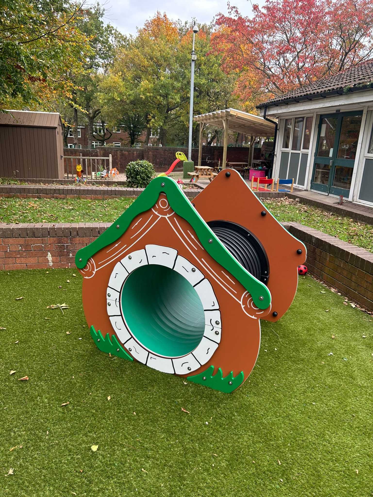 To spark imagination and creativity, we also added a charming play tunnel designed as a ‘Hobbit House,’ offering children an exciting space to explore and play. Bright, eye-catching thermoplastic playground markings were added over the existing surface, bringing colour, movement, and additional play opportunities all achieved in a budget friendly way.
