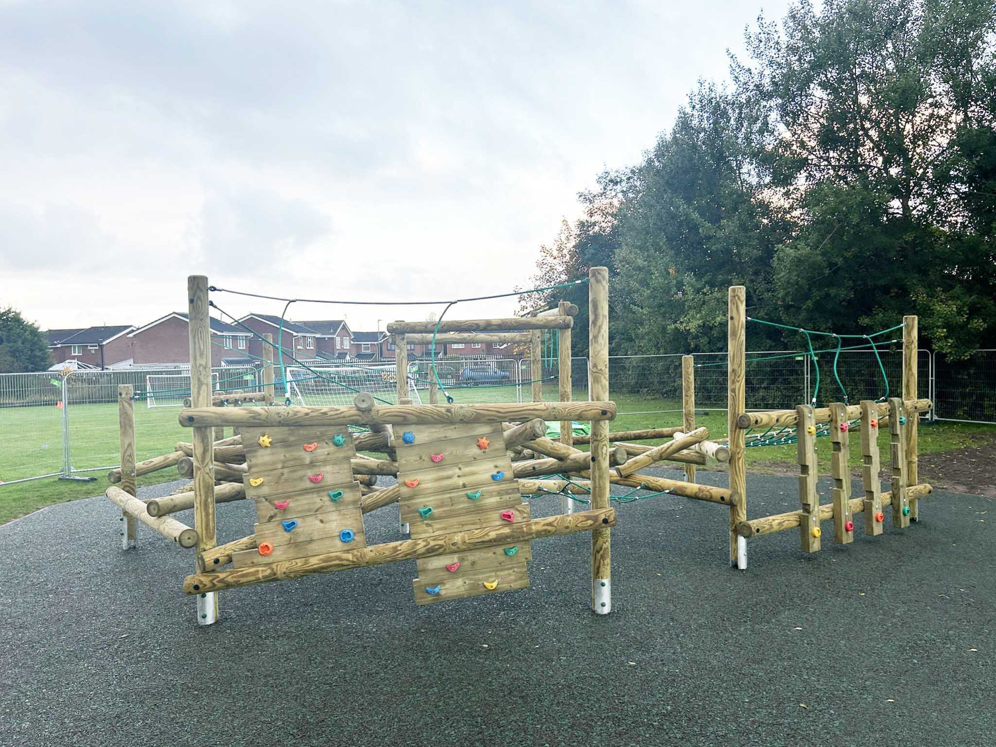 The Clamber Stack Madrina is a dynamic outdoor climbing structure designed to inspire active play and physical development in early years settings. Featuring climb nets, scramble logs, a rock climb panel, balance beams, and support ropes, it offers a range of exciting challenges that build children’s strength, balance, and coordination. Its natural timber and rope design encourage exploration, confidence, and problem solving as children climb, crawl, and balance at their own pace. Perfect for promoting teamwork and communication, the Madrina allows children to take turns, support each other, and develop social skills through shared adventure. With low level access and varied difficulty, it’s inclusive for different abilities, providing a safe yet stimulating environment that enhances physical, social, and emotional growth.