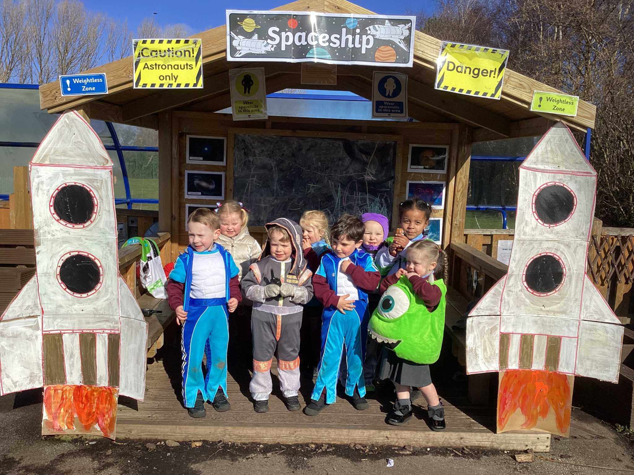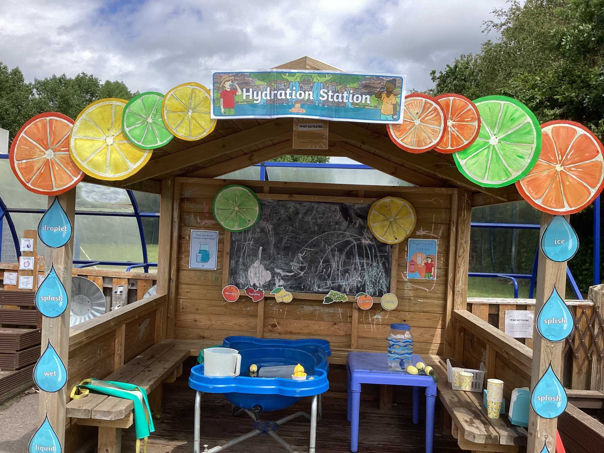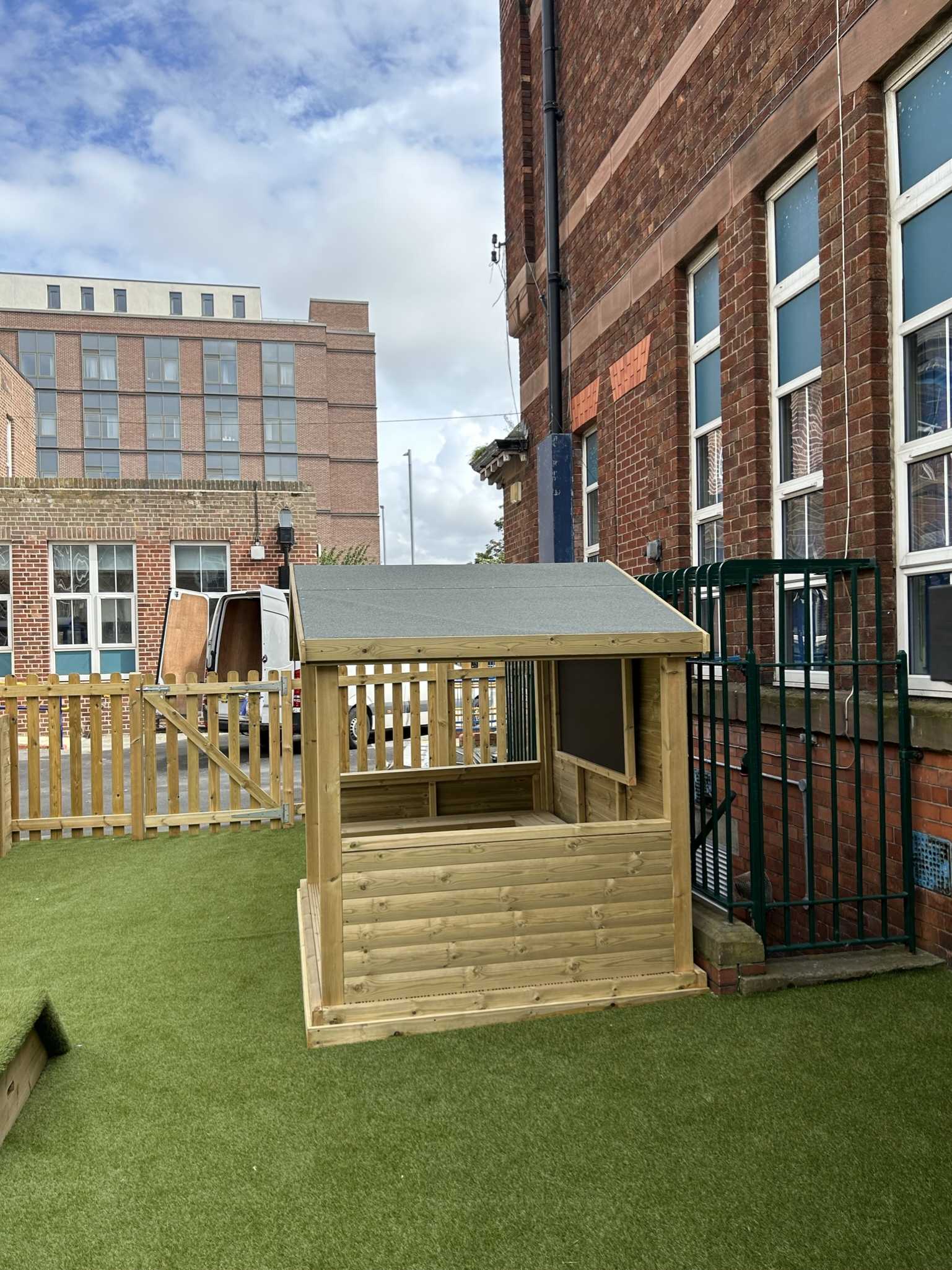 Our Role Play Cabin features a spacious open area, ideal for group performances, setting up a stafe or transforming into a shop offering endless imaginative possibilities. With an interior mounted seating and a mounted chalkboard, it encourages creative expression, social interaction, and the development of communication and fine motor skills in early years.