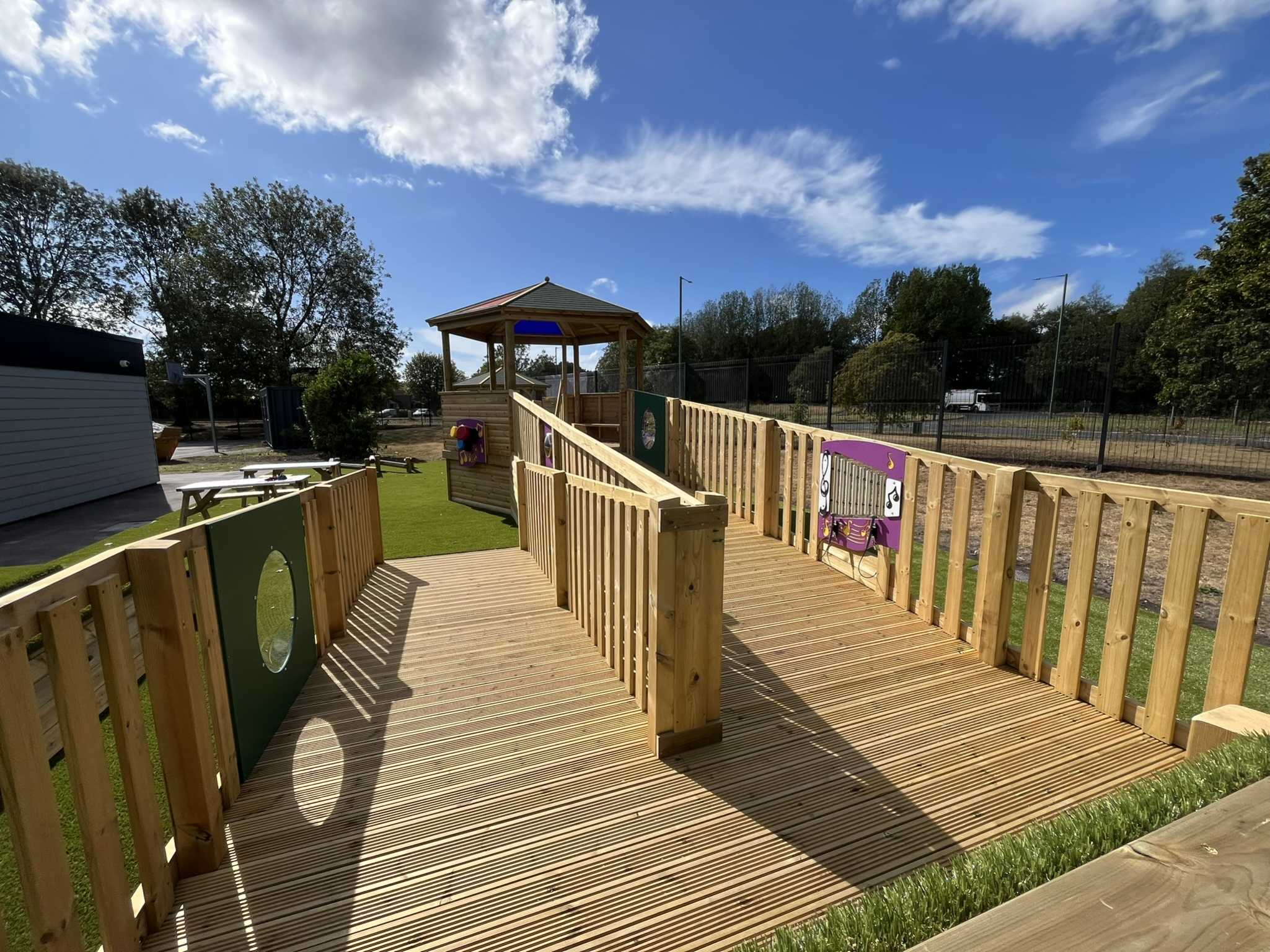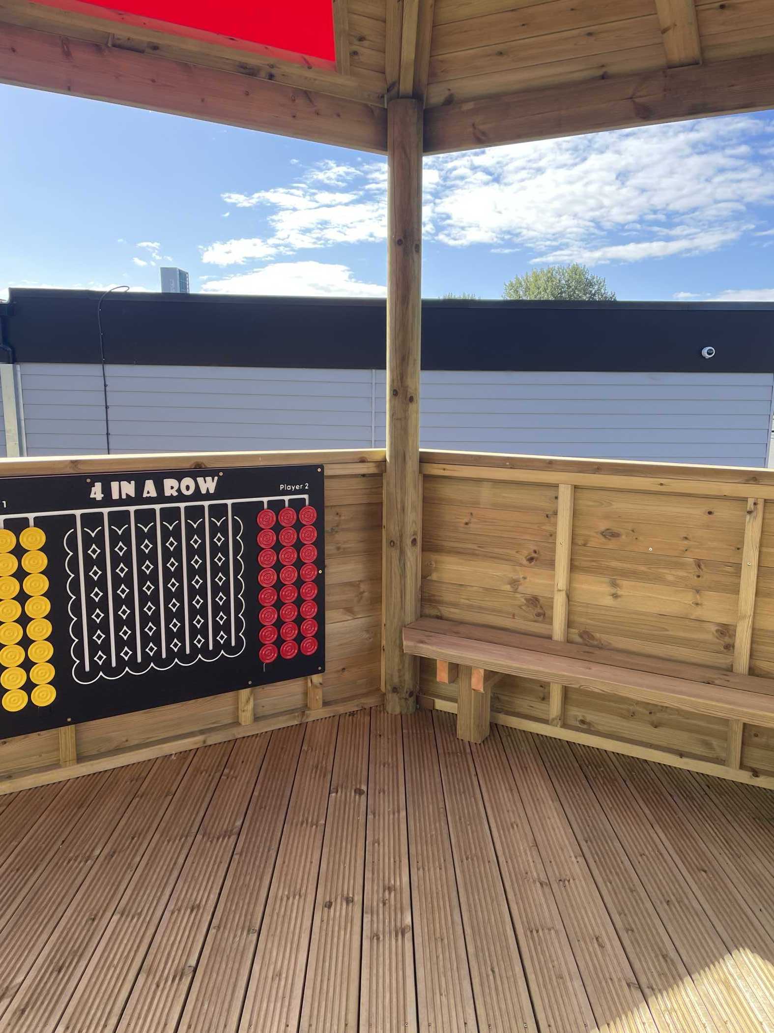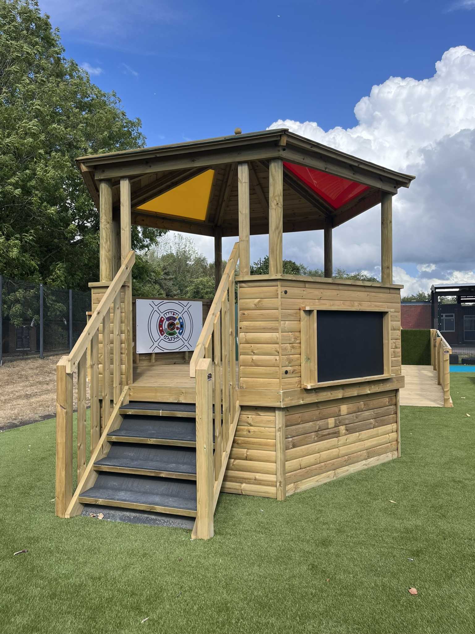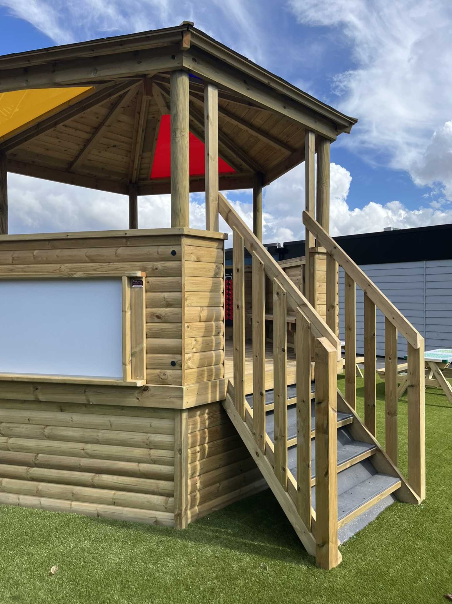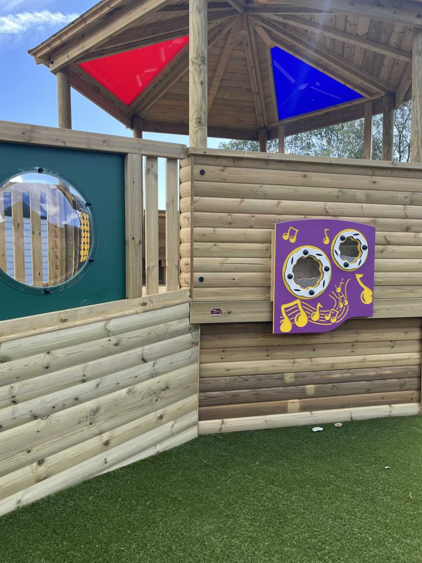 Our Sensory Tower combines an accessible ramp and interactive play panels, ensuring inclusive fun for all children. With a spacious gazebo-style shelter, internal seating, and mark-making features, it provides a welcoming, creative space for play and interaction.