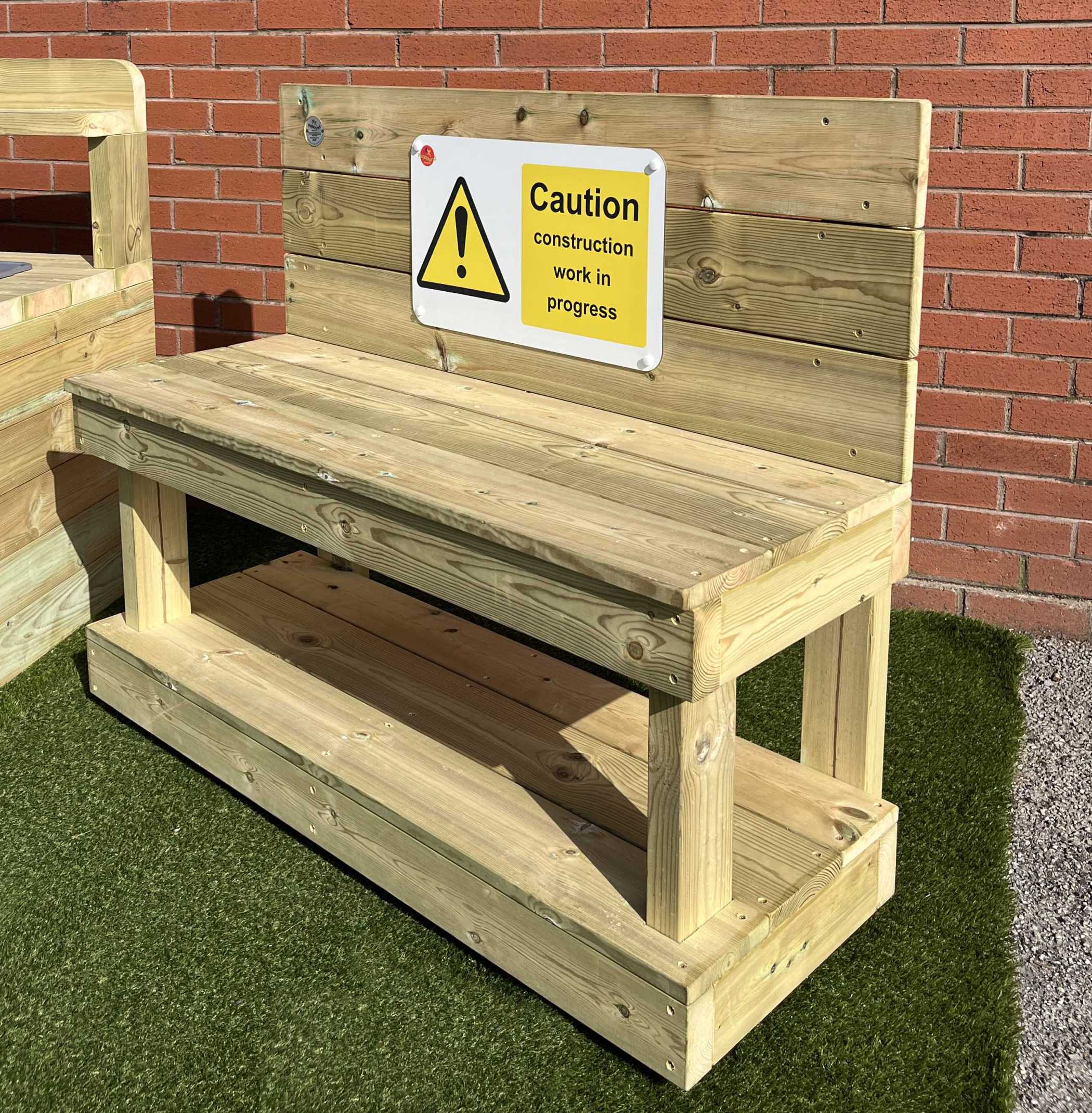 The bench features a sturdy work surface, an under bench shelf for convenient storage, and a construction plaque to enhance the role play experience, encouraging creativity, problem solving, and collaborative play.