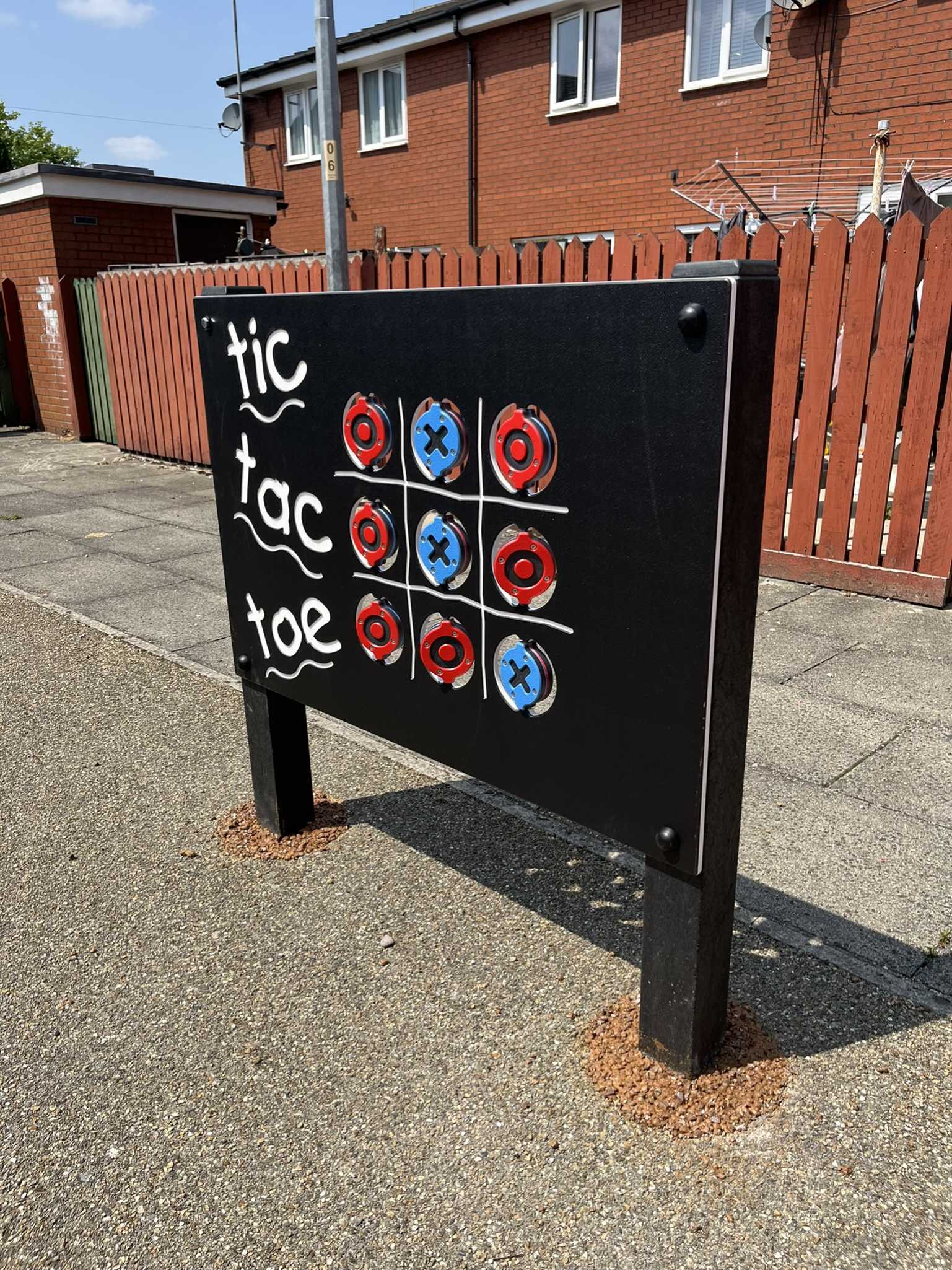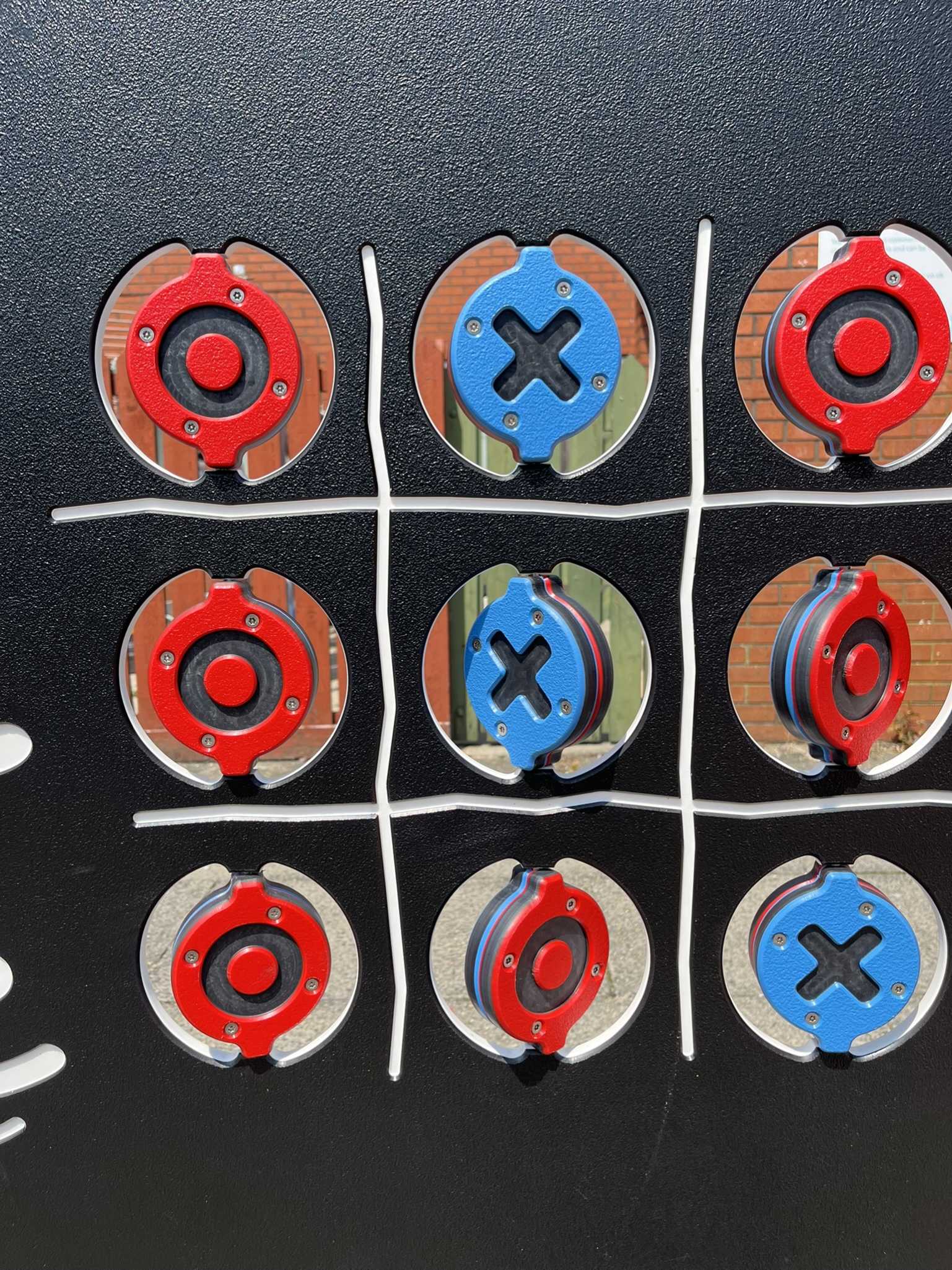 Get ready to play Tic Tac Toe on the Tic Tac Toe Panel Constructed from HDPE panel, the product features multi-layer OXO spinners, stainless steel spinner shafts and fasteners.